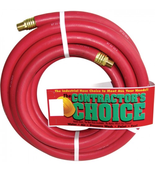 Durable, contractor-grade 3/4in. x 50ft. red rubber air hose has crimped-on heavy-duty brass ends.