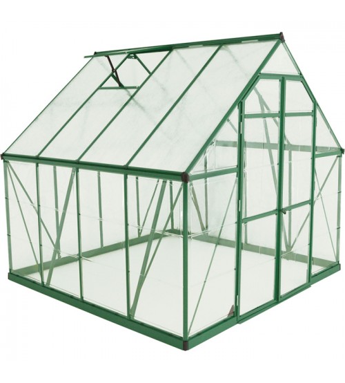The Pelram Balance Hobby Greenhouse offers 64 sq. ft. of growing space plus advanced light management to give you a healthy head start on your growing season. 8ft.L x 8ft.W durable aluminum frame with a traditional pointed peak has 91in. of headroom in the center.